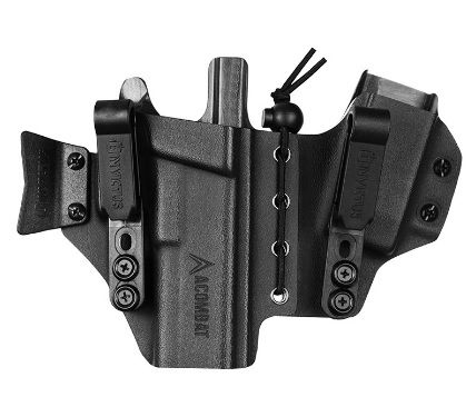 Desenvolvido para oferecer o melhor produto para operadores do meio tático, o Coldre Sidecar IWB Destro para Plataforma Glock® .40 GEN5 ACOMBAT, é uma parceria da INVICTUS com a ACOMBAT, do patrocinado Cláudio Andrade. Ele é um coldre velado com porta-carregador acoplado. Fabricado em Kydex® USA, um termoplástico que não propaga chamas, não deforma e é extremamente resistente a impactos. Possui ajuste de retenção do guarda-mato e carregador, aba para dissimulação do volume da arma (removível), clip de cinto em polímero (POM), resistente e leve, com ajuste de altura e cobertura do retém do carregador, que evita o acionamento acidental na hora do saque. Permite desmontagem do porta-carregador para uso em separado. Além disso tudo, seu design permite encaixe do polegar para melhor empunhadura da arma no momento do saque. É compatível com as armas Glock® G22 GEN5 e G23 GEN5.