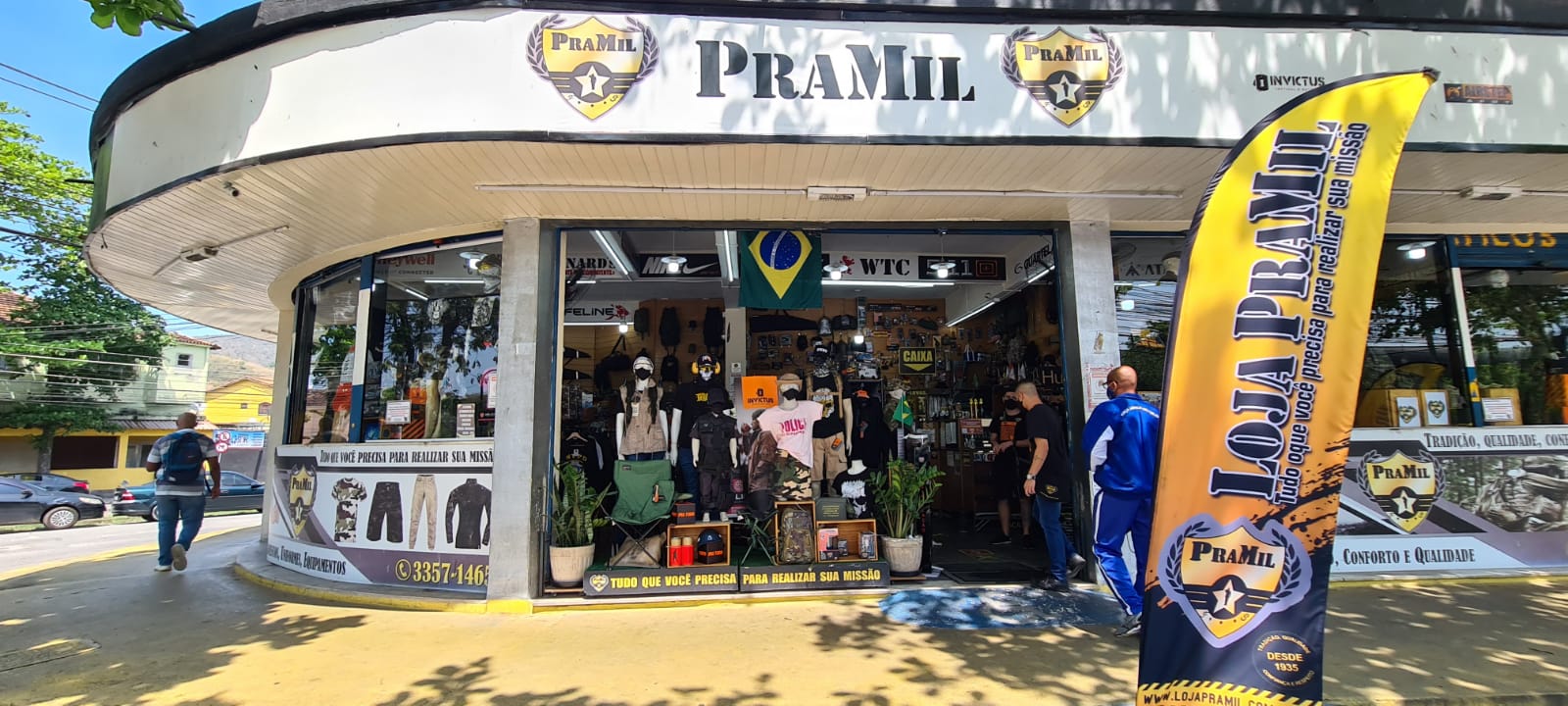Oriunda da Correaria de 1935, na qual Abelardo Falconi foi o primeiro permissionário com registro de atividade pública nos boletins da Escola de Recrutas (E.R./PMERJ), a loja PraMil (abreviatura da intenção “Para os Militares”) nasceu da extensão do Bazar Militar da Família Falconi do CFAP/PMERJ e de forma concisa vem atuando no mercado de artigos militares, proporcionando aos seus clientes e colaboradores uniformes e equipamentos de qualidade, porque na loja PraMil,” Militar se Sente em Casa”.
